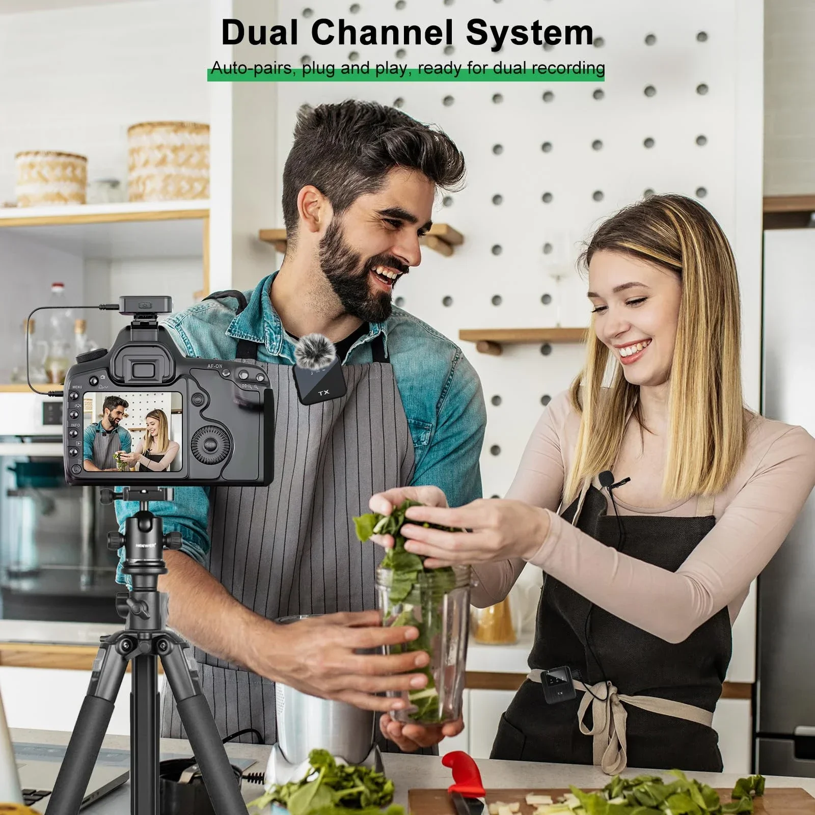 Versatile 3-in-1 wireless microphone with 328ft transmission range. Compatible with iPhone and Android. Perfect for recording, interviews, and content creation.